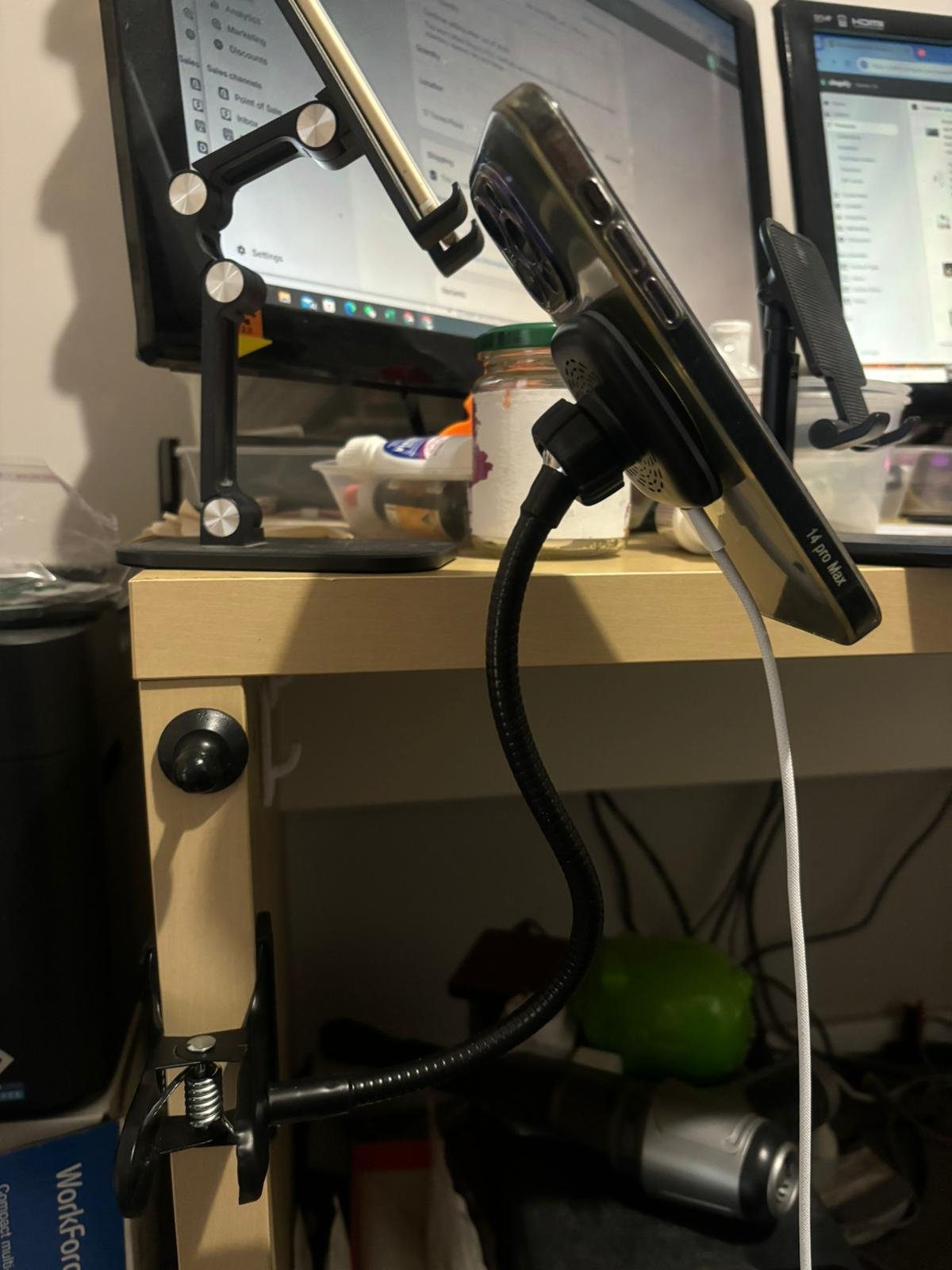BIG Clamp Goose Neck Design Strong Magnetic MagSafe Phone Wireless Fast Charger and Holder