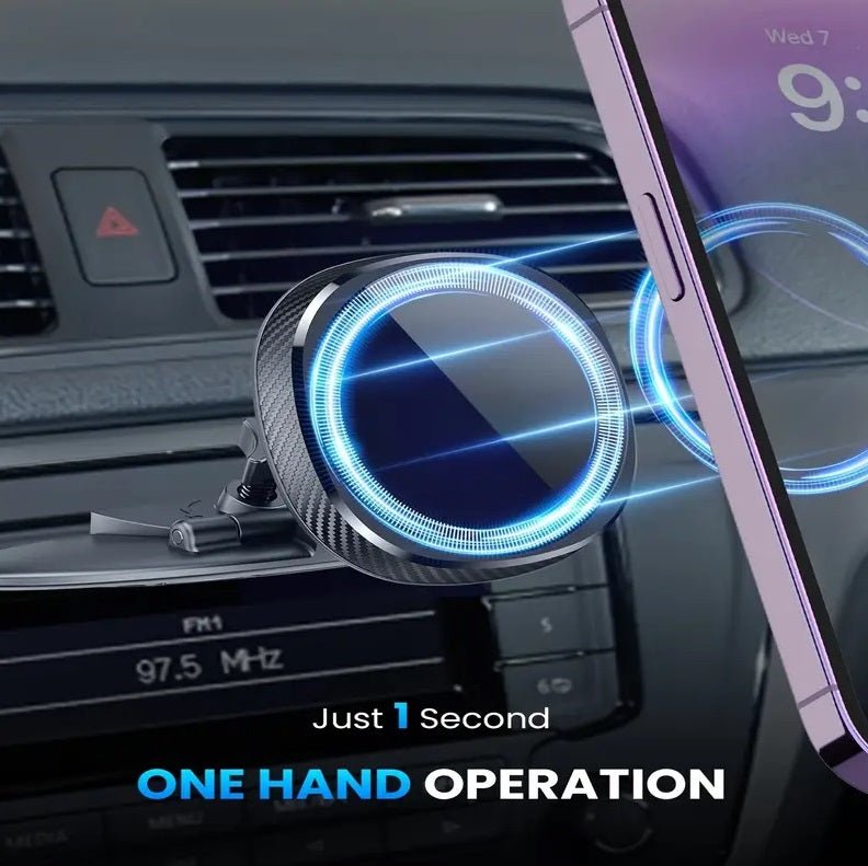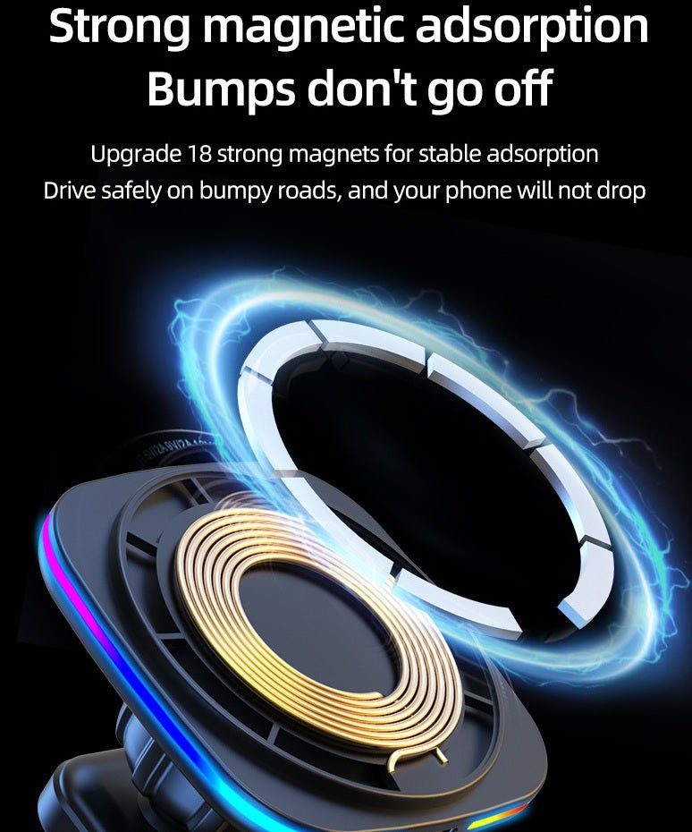 Features include WIRELESS CHARGING, effortless magnetic docking and an included car power adapter.