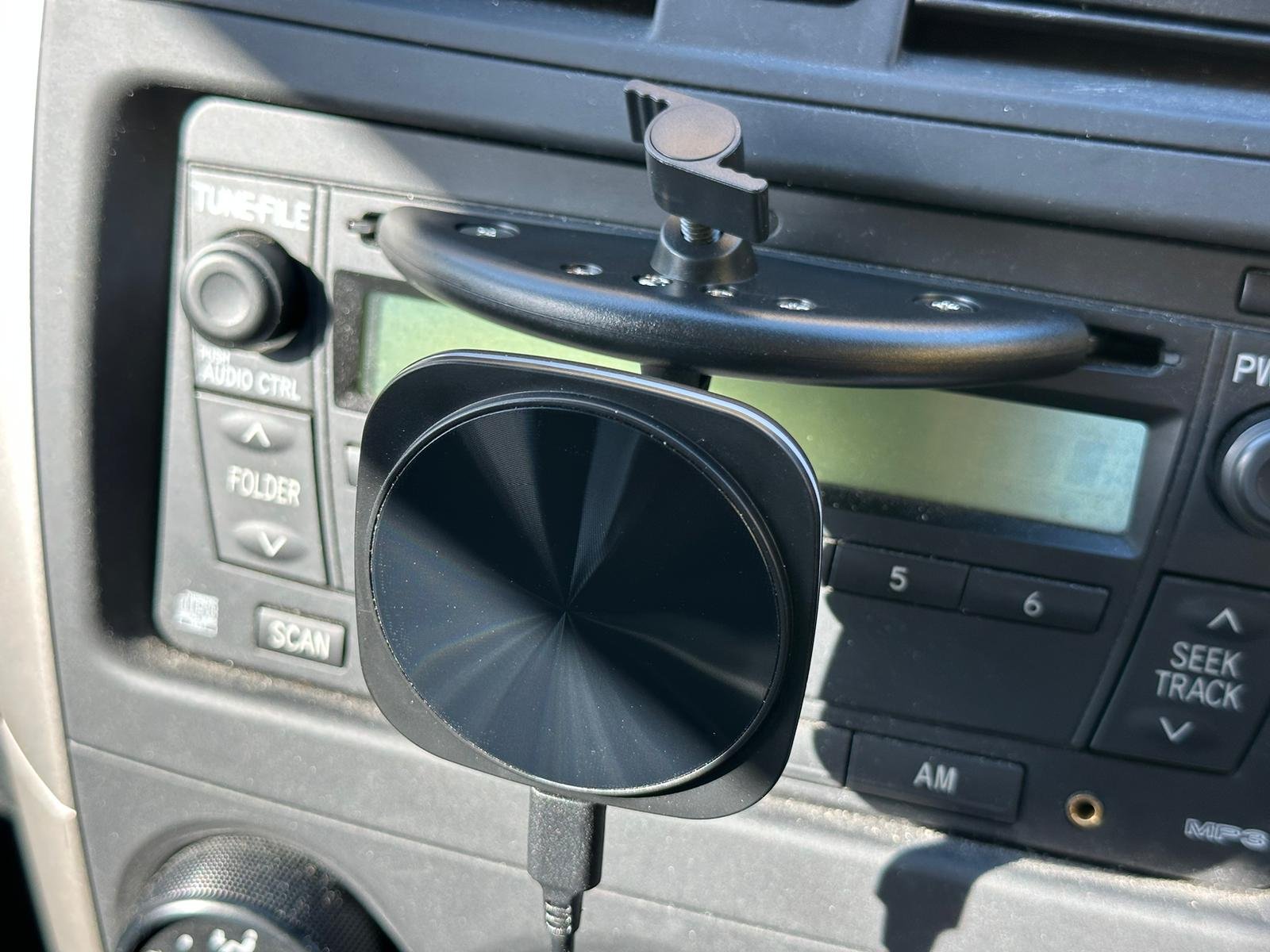 The ultra convenient design uses the CD player slot to mount the phone, leaving the driver’s view safe and unobstructed (as required by law in some states).